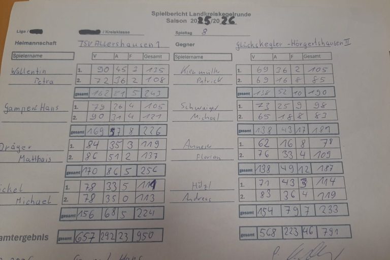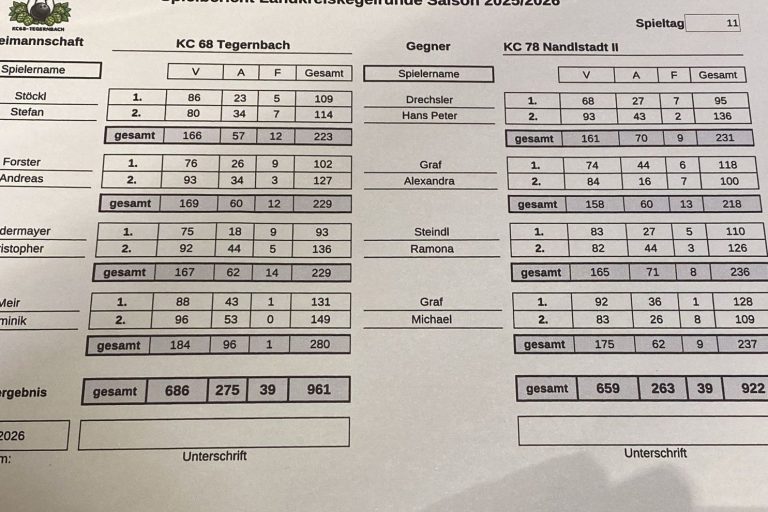 Beste Auswärtsmannschaft KC78 Nandlstadt 922 Holz