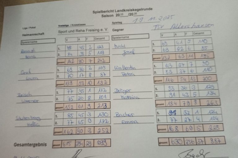 Sport Reha Freisin 899 : 887 TSV Allershausen