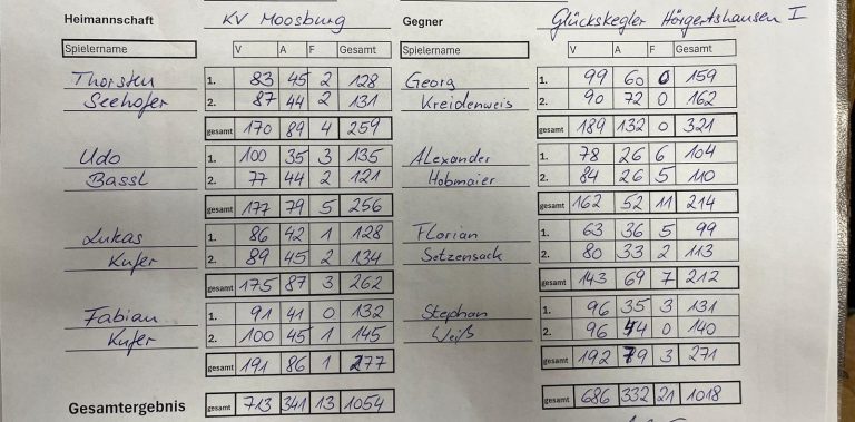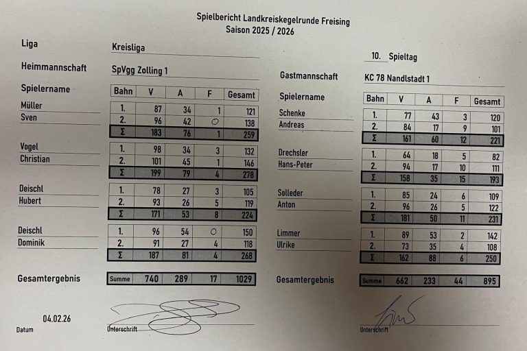 Spvgg. Zolling 1029 : 895 KC 78 Nandlstadt I