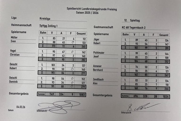 Spvgg. Zolling 1083 : 1024 KC 68 Tegernbach II